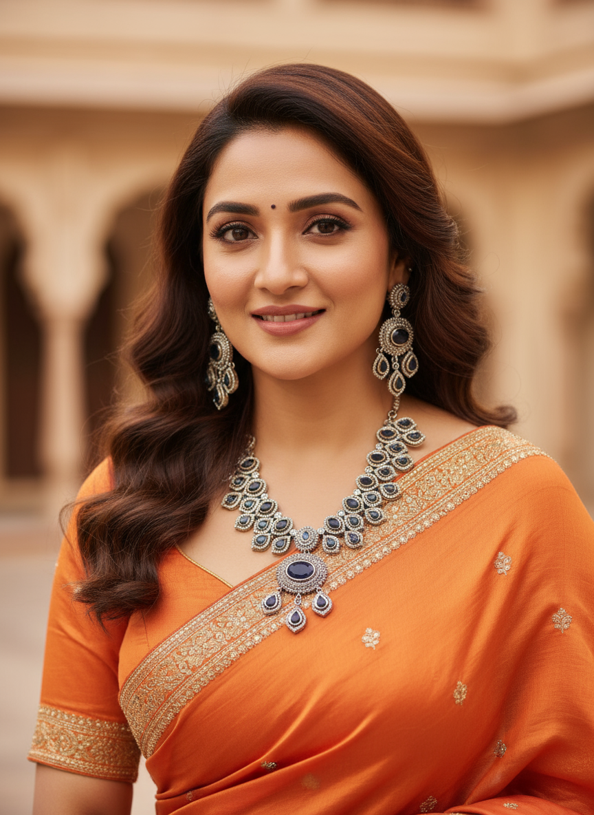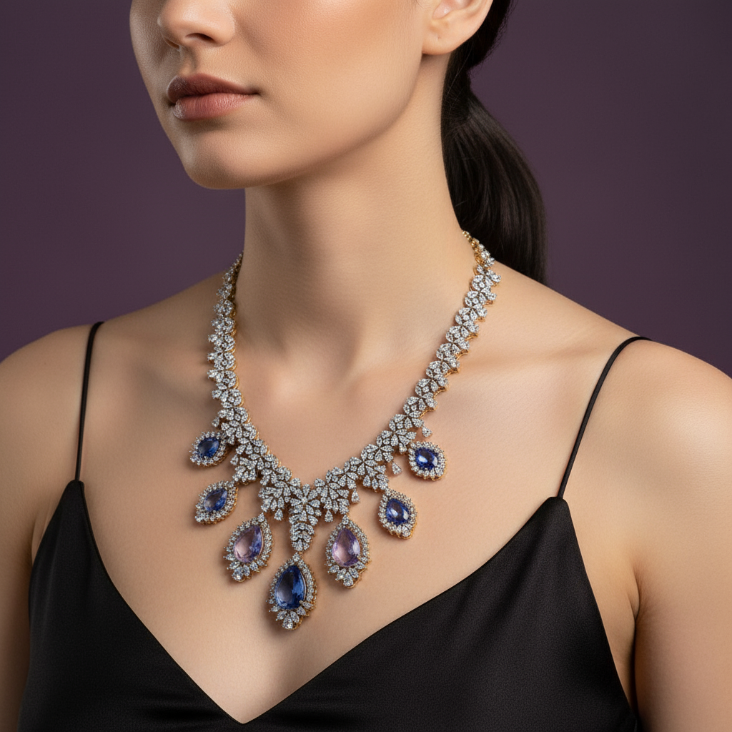 Elegant Royal Blue Gemstone Necklace with Matching Earrings - Traditional Indian Jewelry
