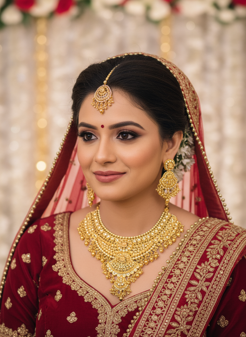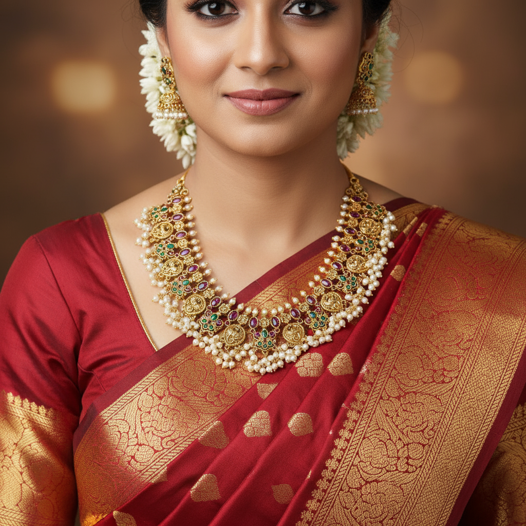 Antique Gold & Emerald Green Bridal Statement Jadau Necklace Set"